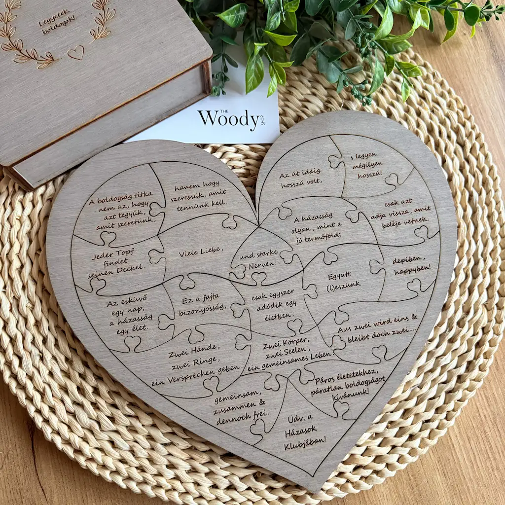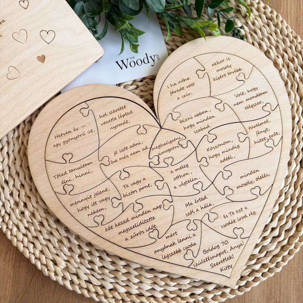 Egyedileg tervezett puzzle, aminek minden egyes darabjára az általad kért szöveget gravírozzuk Neked.